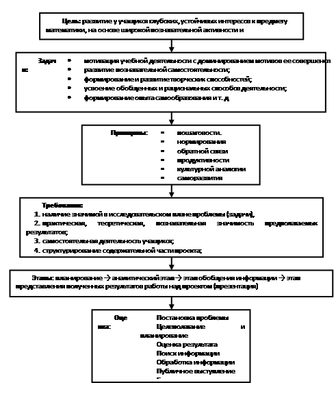 На основе анализа педагогической и методической литературы, опыта преподавания математики в школе нами разработана структура проектной деятельности при изучении математики в 9 классе.