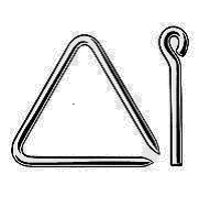 Этим геометрическим термином называется музыкальный инструмент, который входит в группу ударных и довольно часто применяется в симфонической и оперной музыке. По форме инструмент представляет собой равносторонний треугольник. Сделан он из стального прута. Треугольник подвешивают к пульту и легонько ударяют металлической палочкой. Звук получается высокий (неопределенной высоты), звонкий и нежный, а при сильном ударе пронзительный, напоминающий колокольчики.