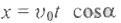 Кроме этого, важное значение, имеет рассмотрение движения тел у поверхности Земли. Ускорение свободного падения g можно считать постоянным (по модулю и направлению) вблизи поверхности Земли, а небольшой участок поверхности Земли — плоскостью. Координаты тела относительно неподвижной инерциальной системы отсчета определяются следующими уравнениями (α — угол между v0 и горизонтальной плоскостью.