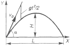 Дальность полета L и наибольшая высота подъема Н (рис. 1) рассчитываются (без учета сопротивления воздуха) по формулам: