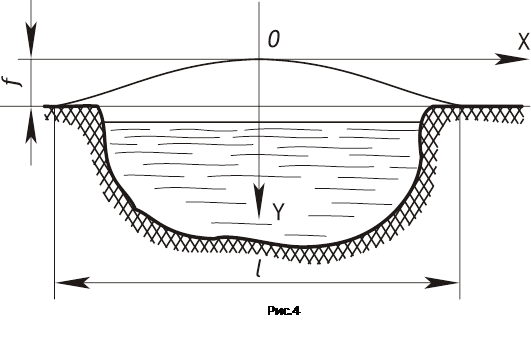 Шоссе проходит через речку. Мост имеет форму параболы у = рх2. Каким нужно сделать уклон насыпи к мосту, чтобы переход с моста на насыпь был плавный? Длина моста l = 20 м, стрела провеса f = 0,5 м (рис. 4).