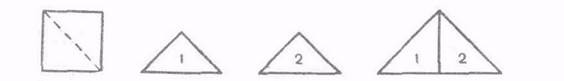 Вот посмотрите, как выполняют задания некоторые учащиеся II класса одной из московских школ. Вначале были предъявлены два совершенно равных квадрата, а затем один из них был разрезан по диагонали на два треугольника, из которых, в свою очередь, был составлен один треугольник: