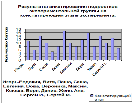Данные первичной диагностики нашего эксперимента показали следующие результаты:
